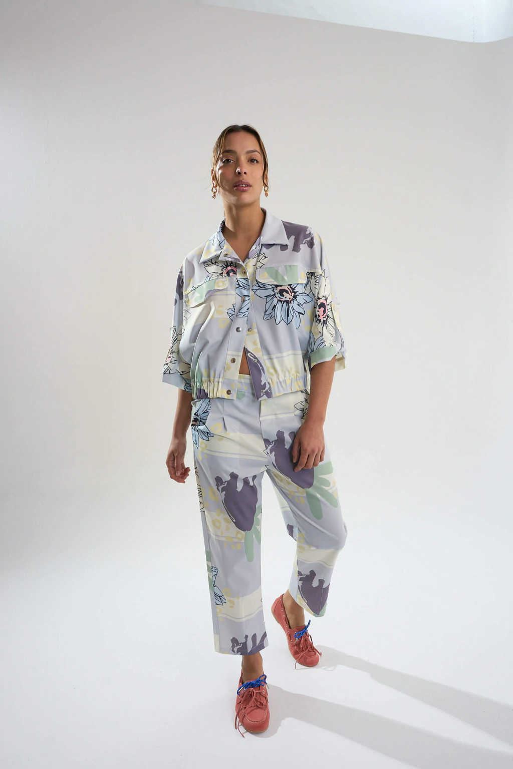 DESCRIPCIÓN: El pantalón Lupe es de Praga viene con elástico en la cintura, dos bolsillos laterales y dos en la espalda con solapas. El modelo es tiro alto con pinzas en la cintura y bragueta falsa como detalle. El corte es recto y más afinado en los tobillos.